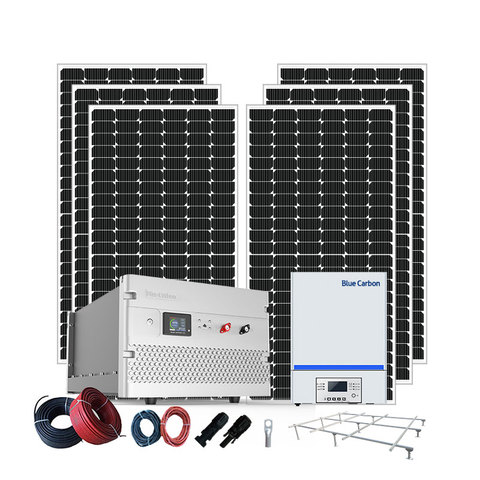 Système solaire PV hors réseau en carbone bleu 5kw, Kit de panneau solaire domestique, batterie au lithium fer Lifepo4, système solaire domestique